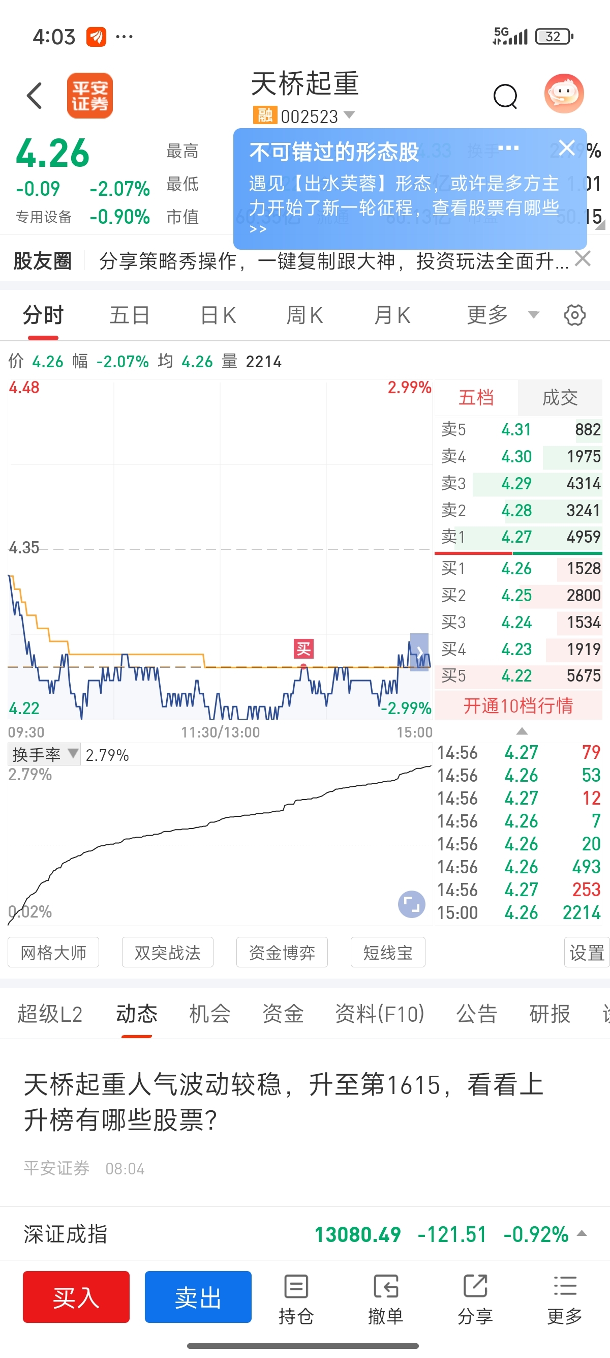 $天桥起重(SZ002523)$ 起飞!!!