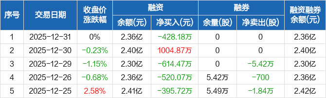 天桥起重:融资净偿还428.18万元,融资余额2.36亿元(12-31)