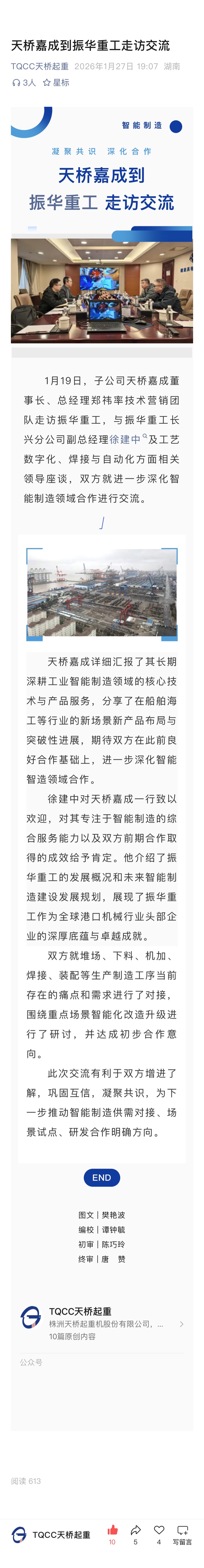 $天桥起重(SZ002523)$ 每天都有好消息