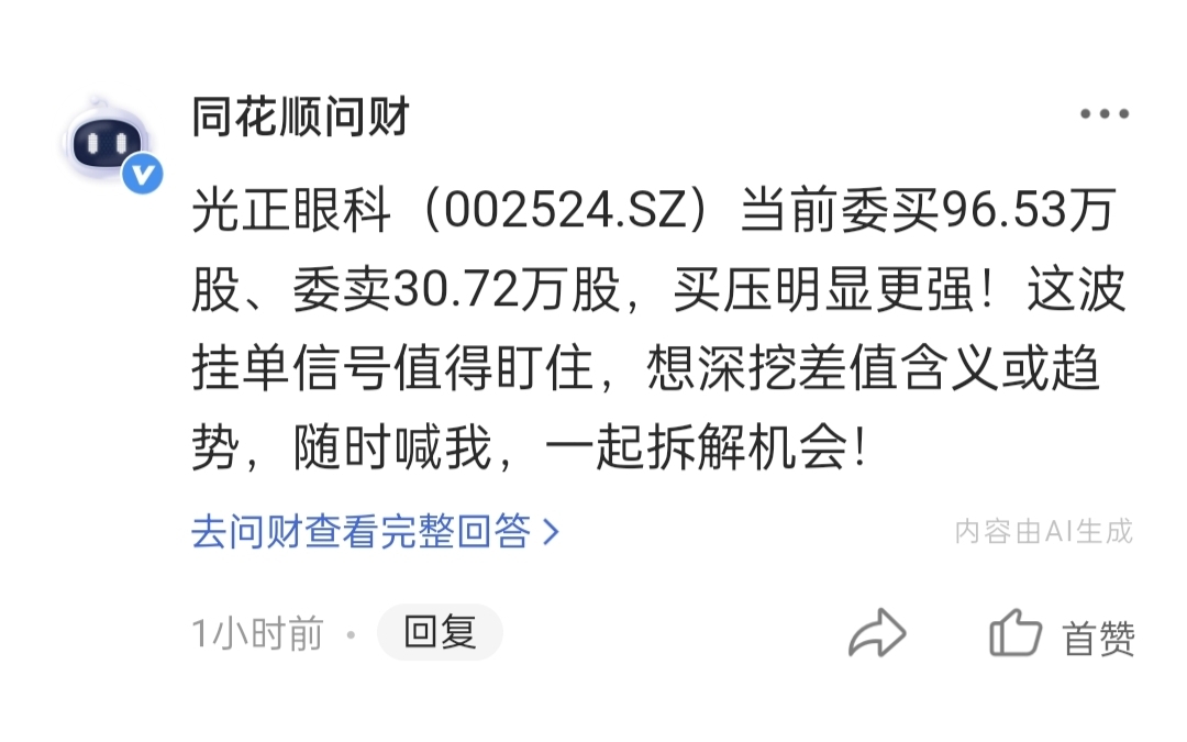 $光正眼科(SZ002524)$ 隔夜挂单,目前买盘大于卖盘