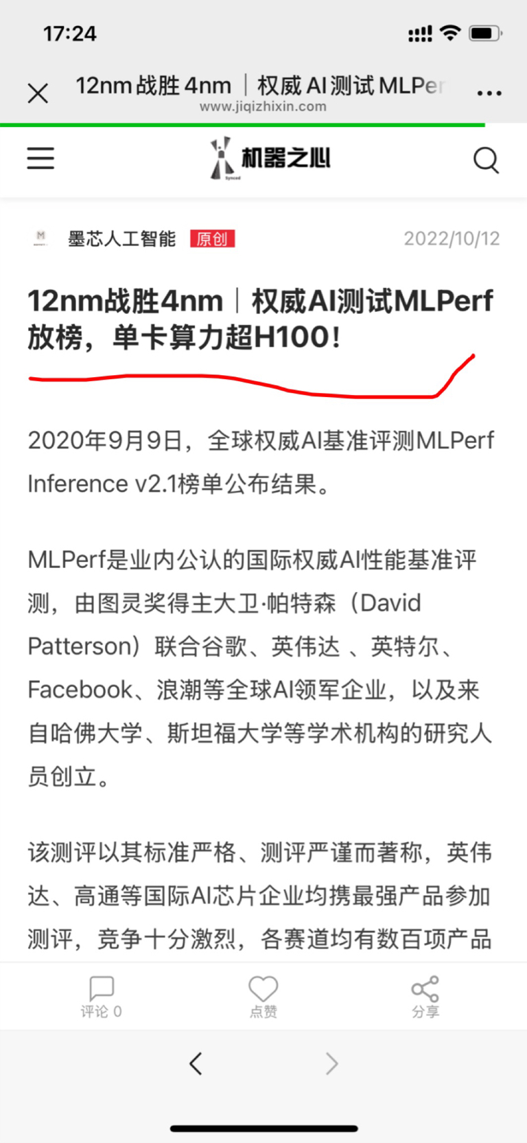 $岩山科技(SZ002195)$ 岩山科技投资的墨芯人工智能,S30以ResNet-50 95784 FPS的单卡算力夺得第一,是英伟达未来4nm产品——H100的1.2倍,是A100的2倍。两年之后的迭代版s40可想而知了