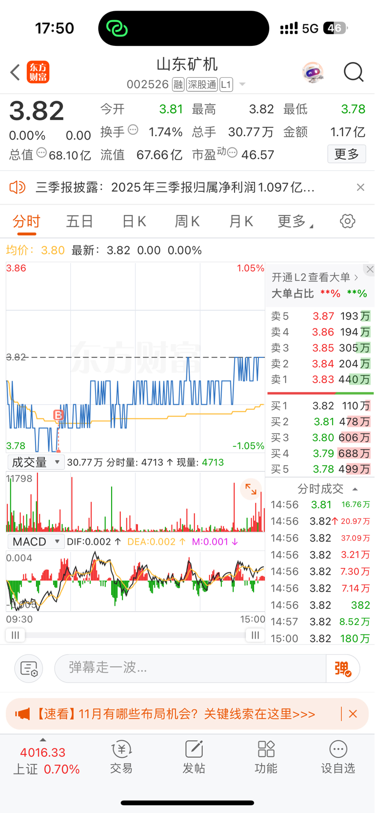 $山东矿机(SZ002526)$ 明天起码上涨2分钱 我又要走了