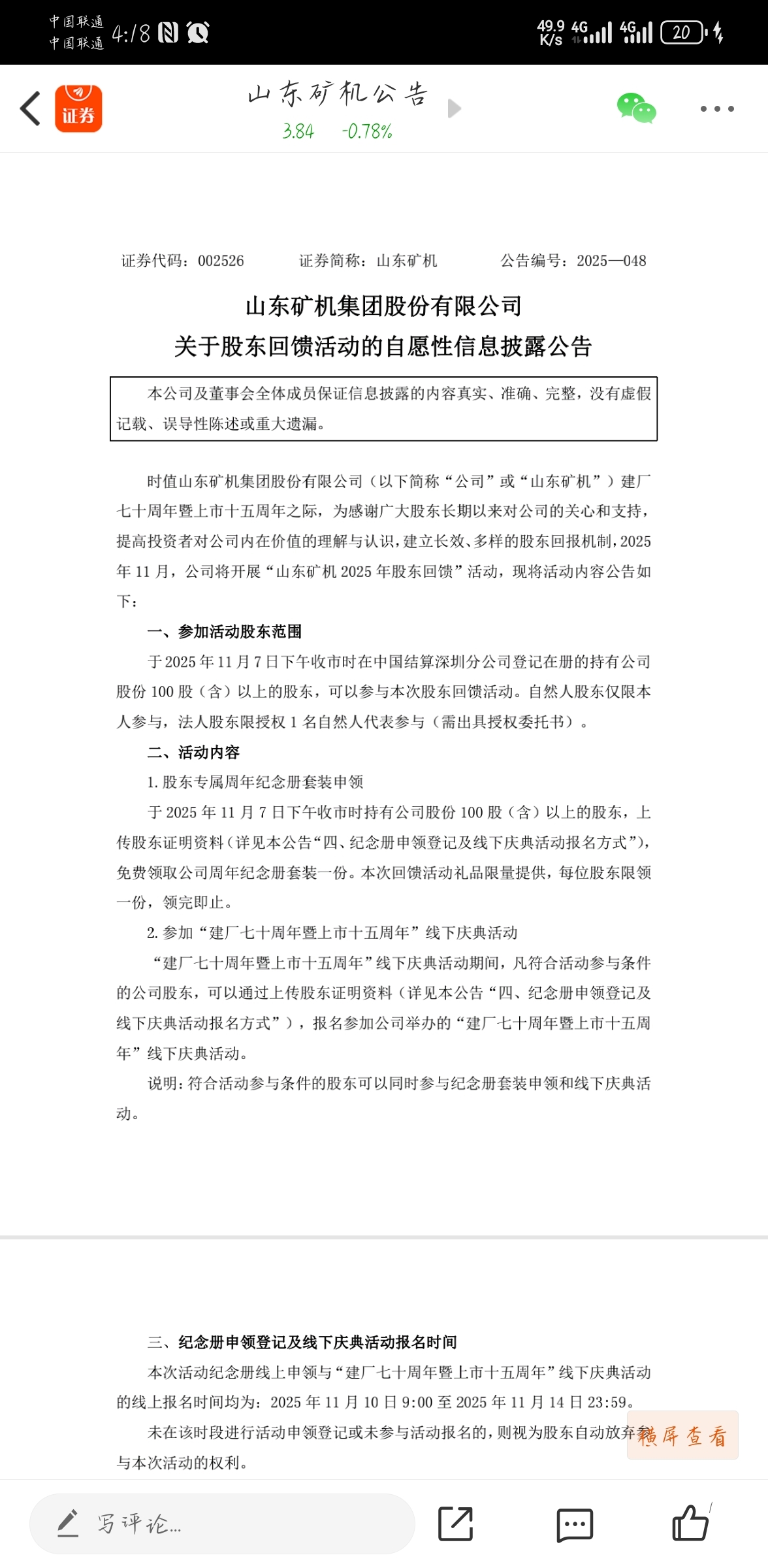 $山东矿机(SZ002526)$ 送纪念册了可惜我没有股。