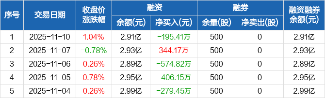 山东矿机:融资净偿还195.41万元,融资余额2.91亿元(11-10)