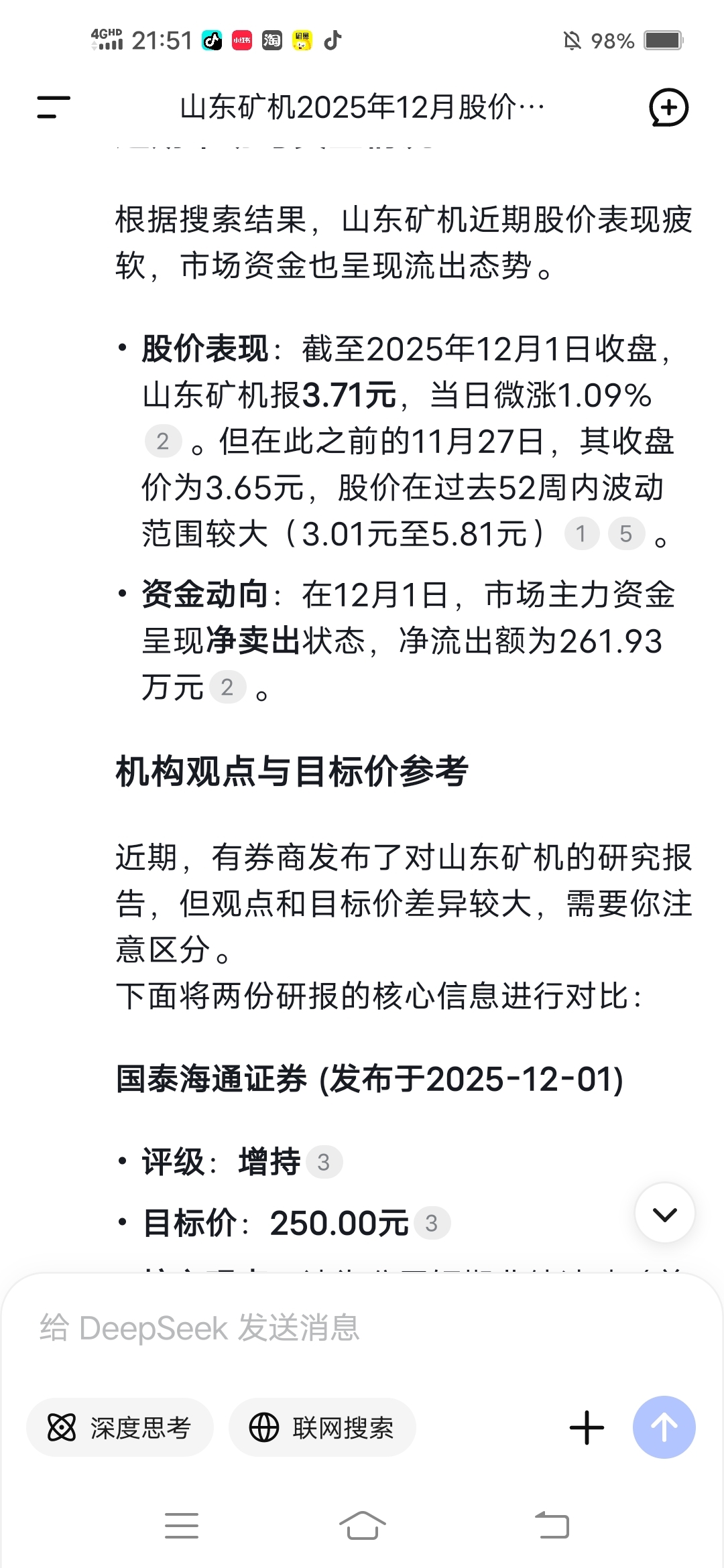 $山东矿机(SZ002526)$ deepseek对山洞哐叽的评价
