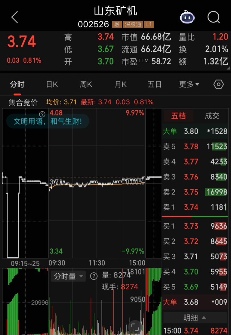 $山东矿机(SZ002526)$ 竞价跌停吓走了多少韭菜