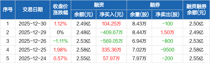 山东矿机:融资净买入104.25万元,融资余额2.49亿元(12-30)