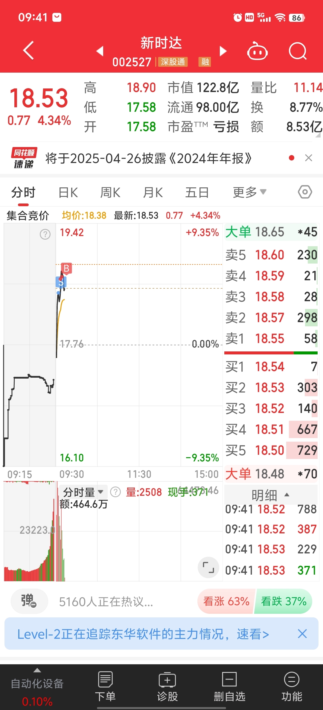 $新时达(SZ002527)$ 拉升磨磨唧唧的,害我做了个反T,难受 。。