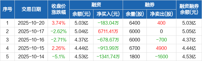 新时达:融资净偿还183.04万元,融资余额5.03亿元(10-20)