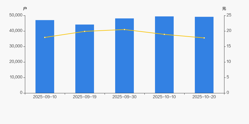 截至2025年10月20日,公司最新总股本为6.63亿股,其中流通股本为5.29亿股。户均持有流通股数量由上期的1.07万股上升至1.08万股,户均流通市值19.13万元。