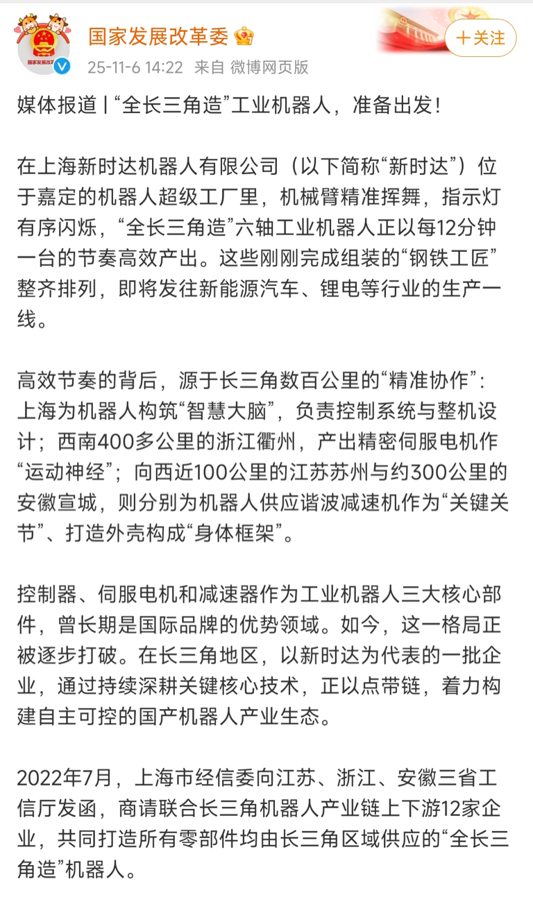 这个消息比较隐蔽,主力有时也会错过,发改委点名表扬新时达,相当于把新时达放到了郭之栋梁的位置,明天一字都正常,现在是发改委都给你背书了,散户只要无脑跟随,必有厚报。