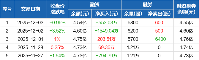 新时达:融资净偿还553.03万元,融资余额4.54亿元(12-03)