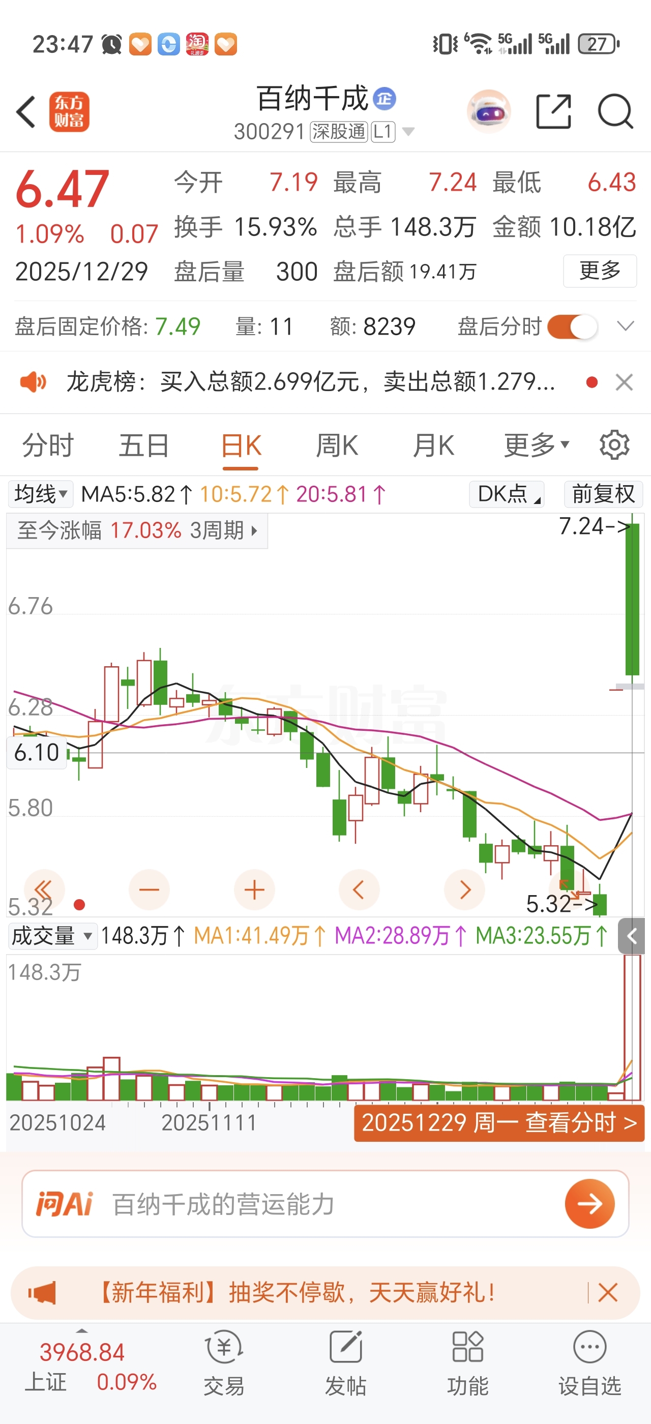 和6.47的百纳千成走势几乎一样。
