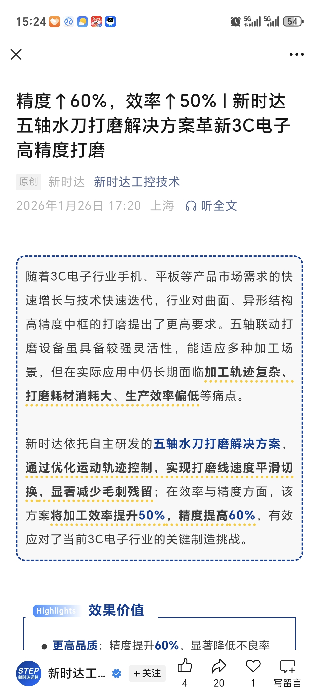 精度↑60%,效率↑50%|新时达五轴水刀打磨解决方案革新3C电子高精度打磨