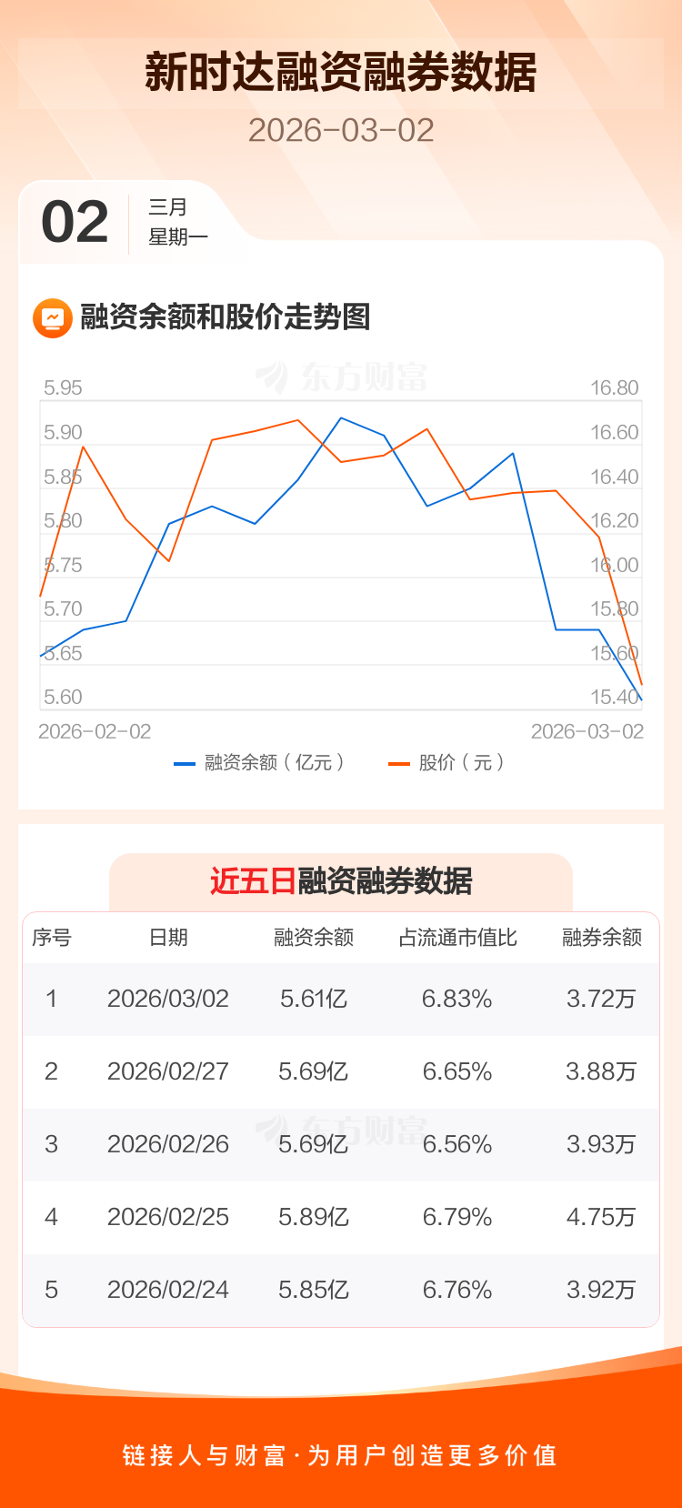 交易所最新数据显示,新时达于2026年3月2日获融资买入2880.10万元,融资偿还3746.86万元,当日融资净偿还866.77万元。目前,该股融资余额5.61亿,占流通市值比例为6.83%。