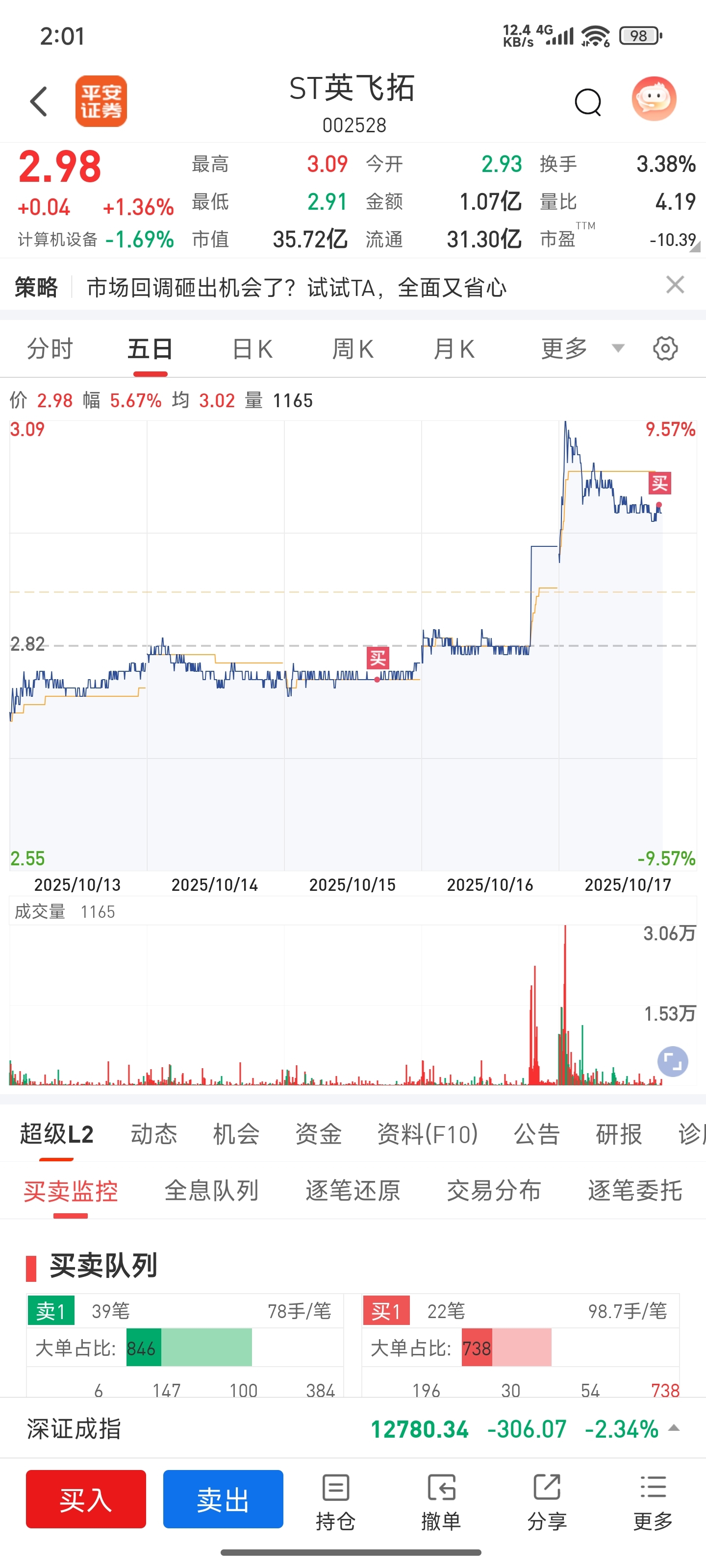 $ST英飞拓(SZ002528)$ 我前天又回来了,结果买少了