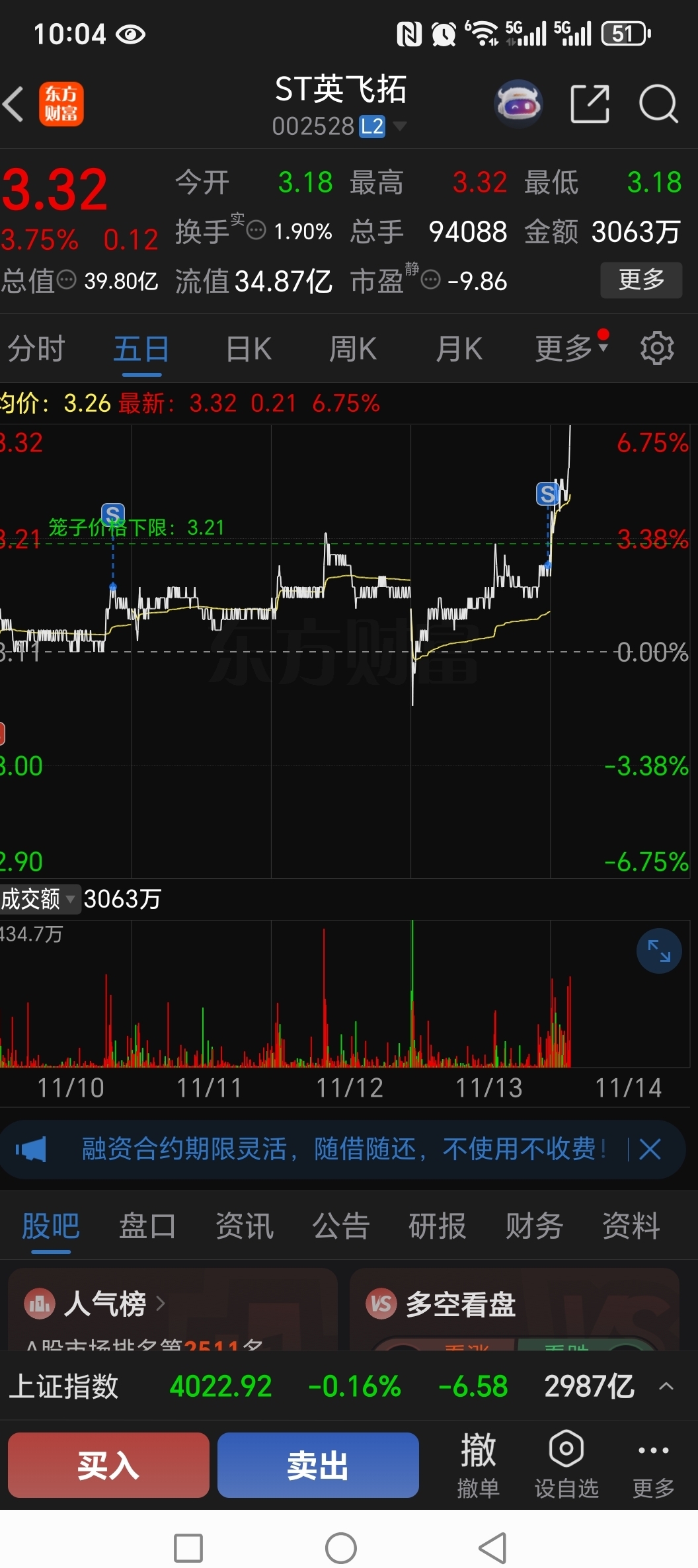 $ST英飞拓(SZ002528)$ 昨天刚割肉走了,真郁闷