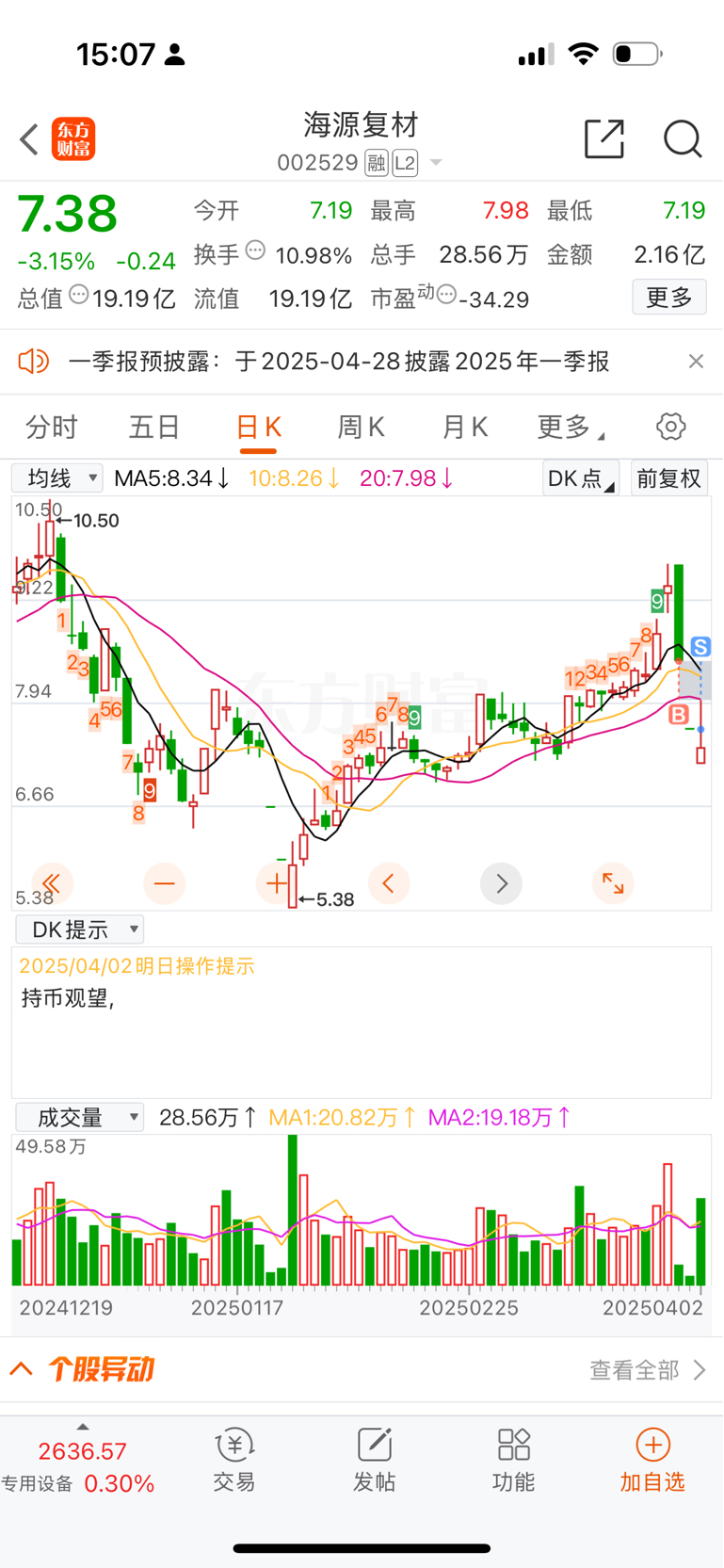$海源复材(SZ002529)$ 预期是再来两个跌停才出来,没吃到,嘿嘿,等于赚了20%