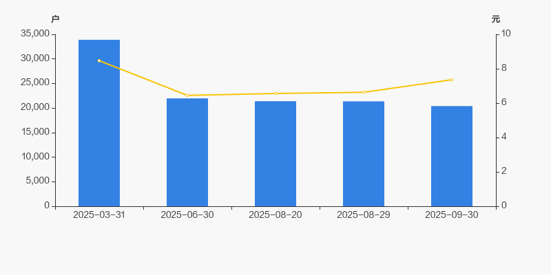 2025年3月31日至今,公司股东户数显著下降,区间跌幅为39.83%。2025年3月31日至2025年9月30日区间股价下降13.11%。