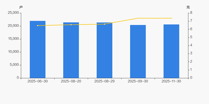 2025年6月30日至今,公司股东户数有所下降,区间跌幅为6.21%。2025年6月30日至2025年11月30日区间股价上涨14.11%。