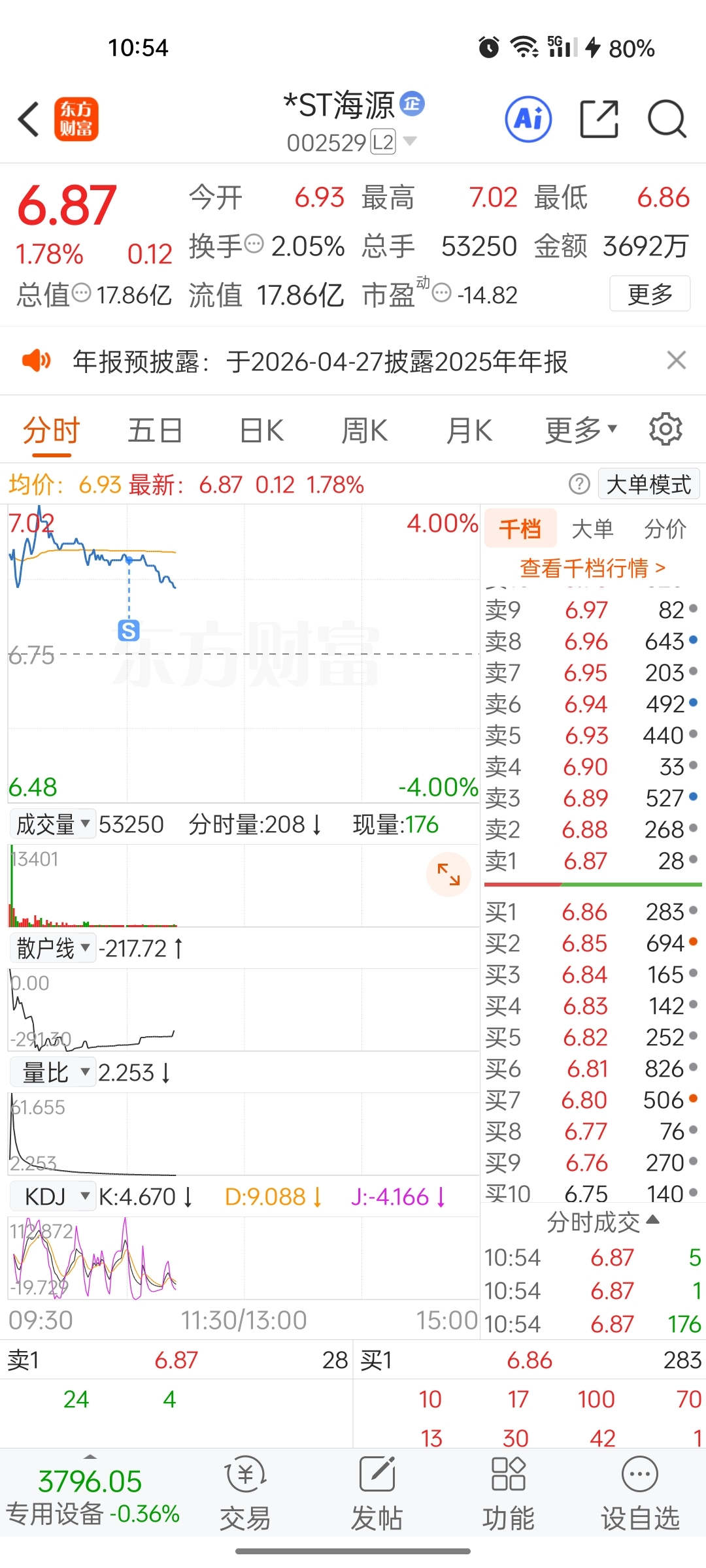 $*ST海源(SZ002529)$ 没熟,先走了