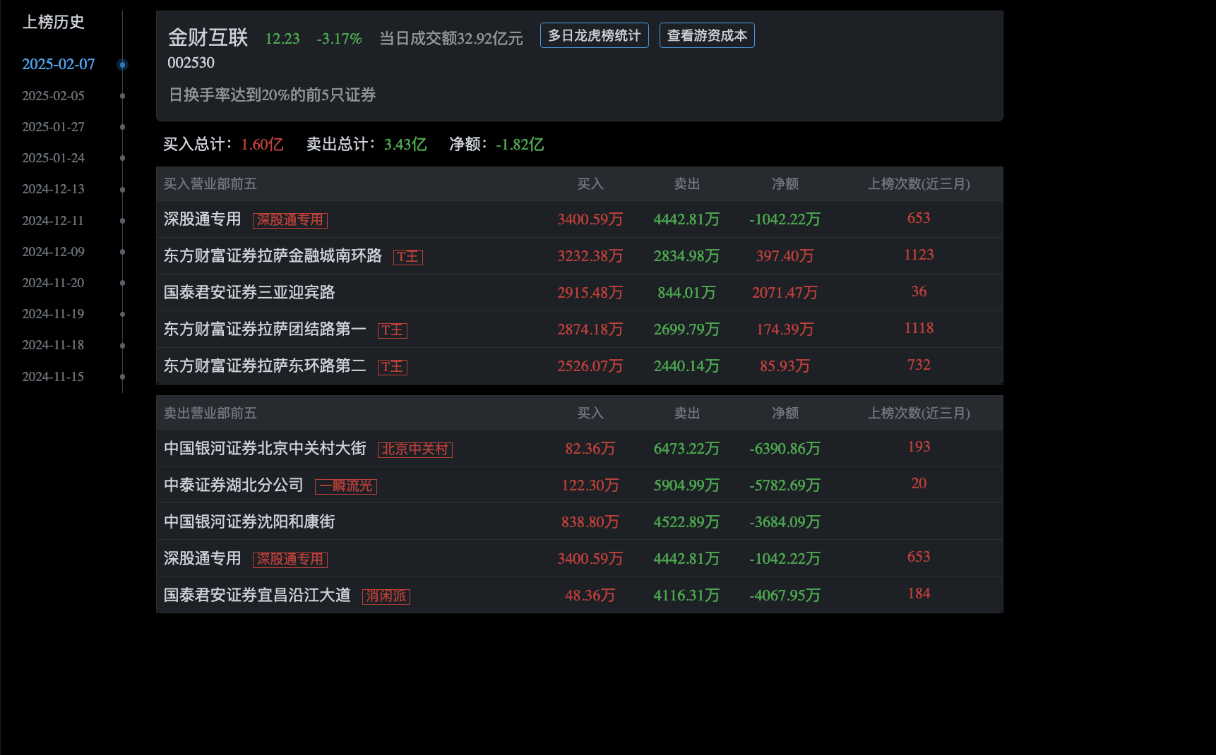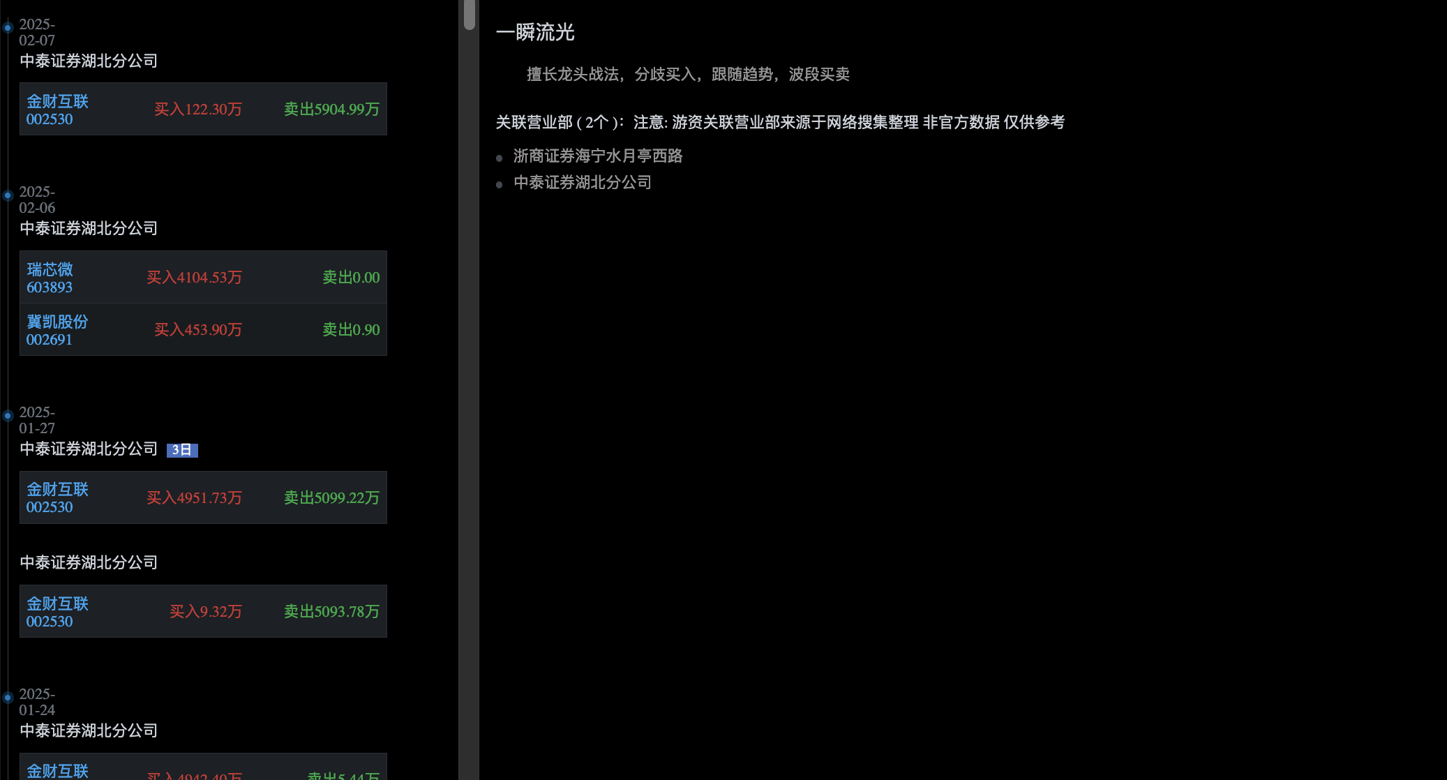 金财互联今日游资龙虎榜席位上榜数据如下!