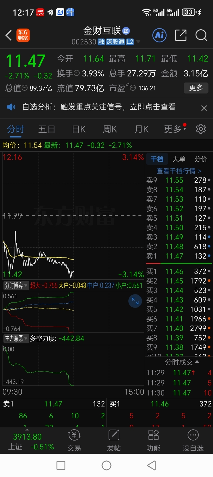 $金财互联(SZ002530)$ 下午跌停板了,全是散户买的
