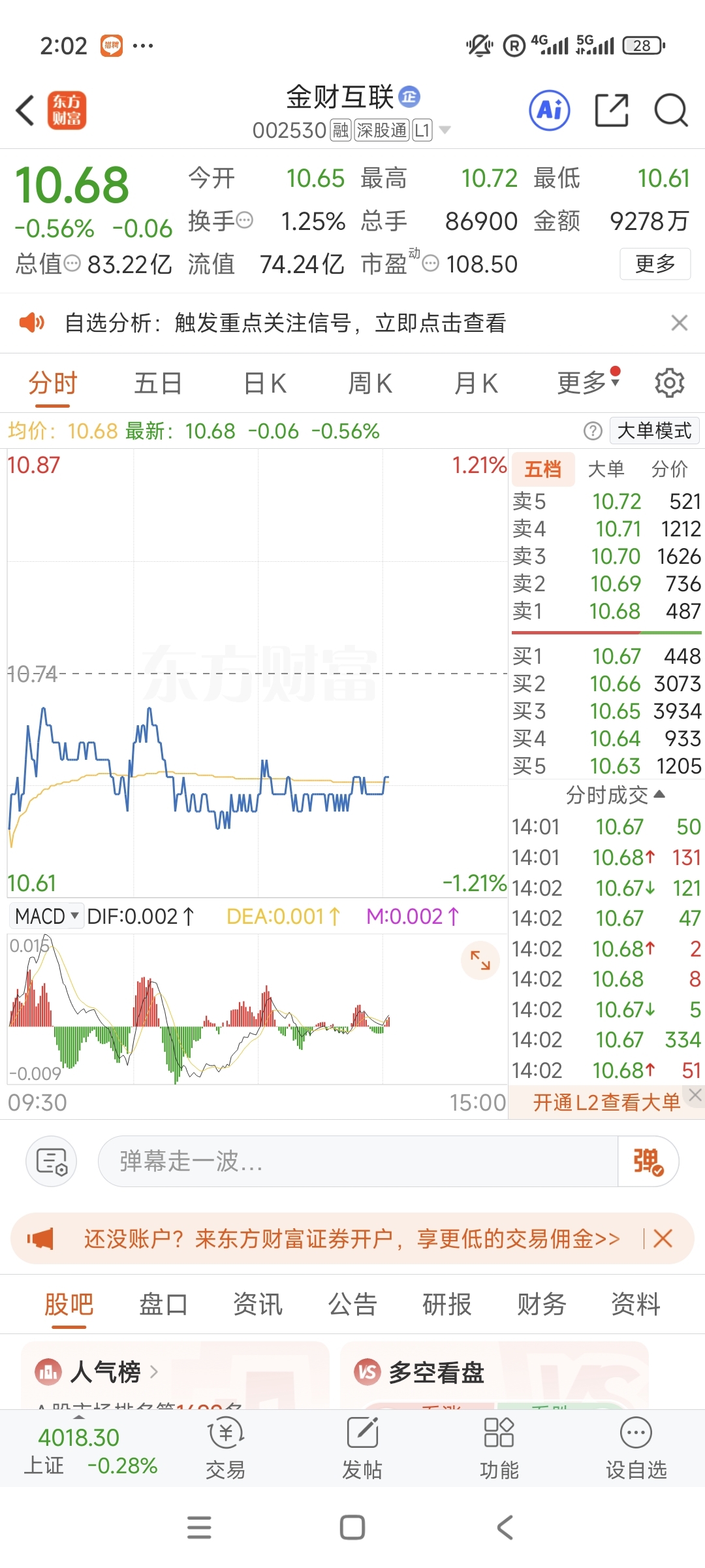 $金财互联(SZ002530)$ 分时图走的太规率,明显庄控的厉害。