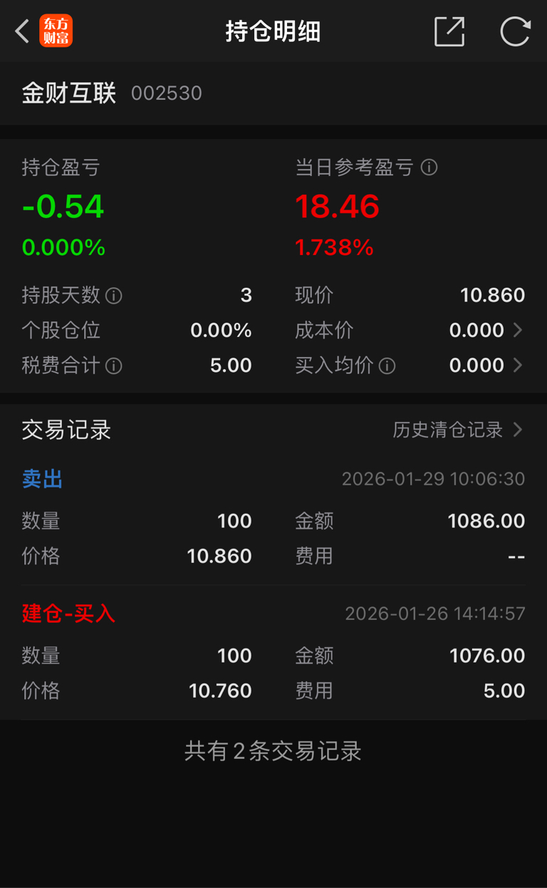 $金财互联(SZ002530)$ 我卖了,你就涨?