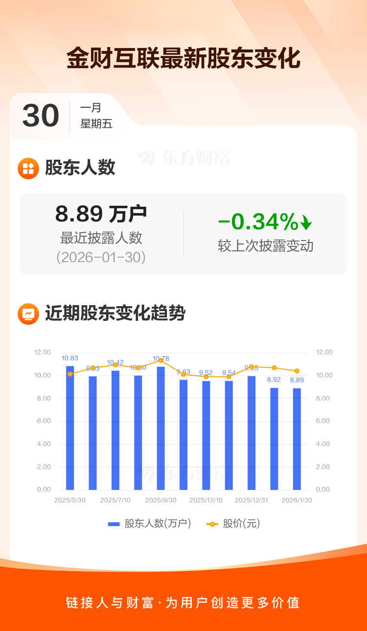 金财互联:截至1月30日最新股东户数8.89万户,较上期减少0.34%