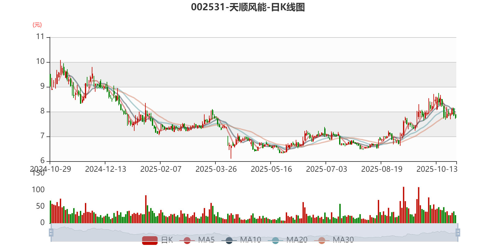 以10月28日收盘价计算,天顺风能目前市盈率(TTM)约为-797.32倍,市净率(LF)约1.55倍,市销率(TTM)约2.78倍。