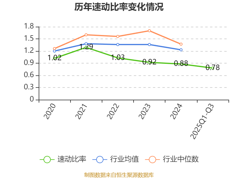 2025年前三季度,公司流动比率为1.09,速动比率为0.78。