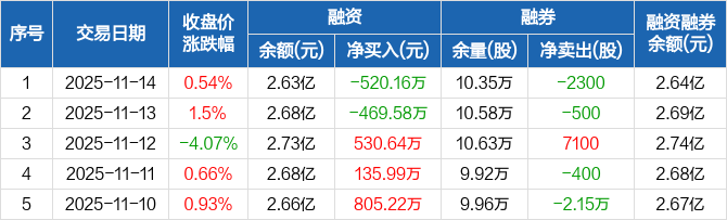 天顺风能:融资净偿还520.16万元,融资余额2.63亿元(11-14)