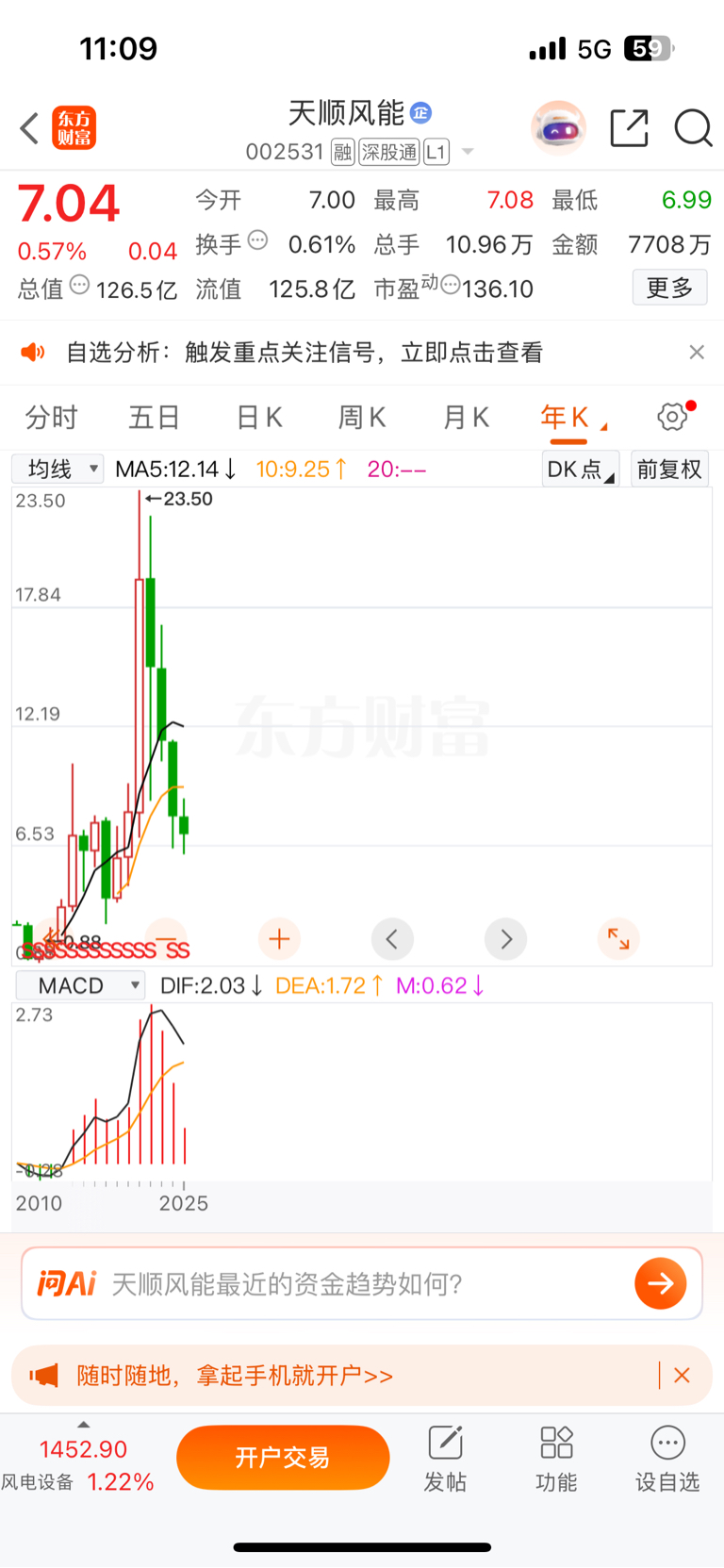 $天顺风能(SZ002531)$ 怎么有脸啊?连续四年大阴线。