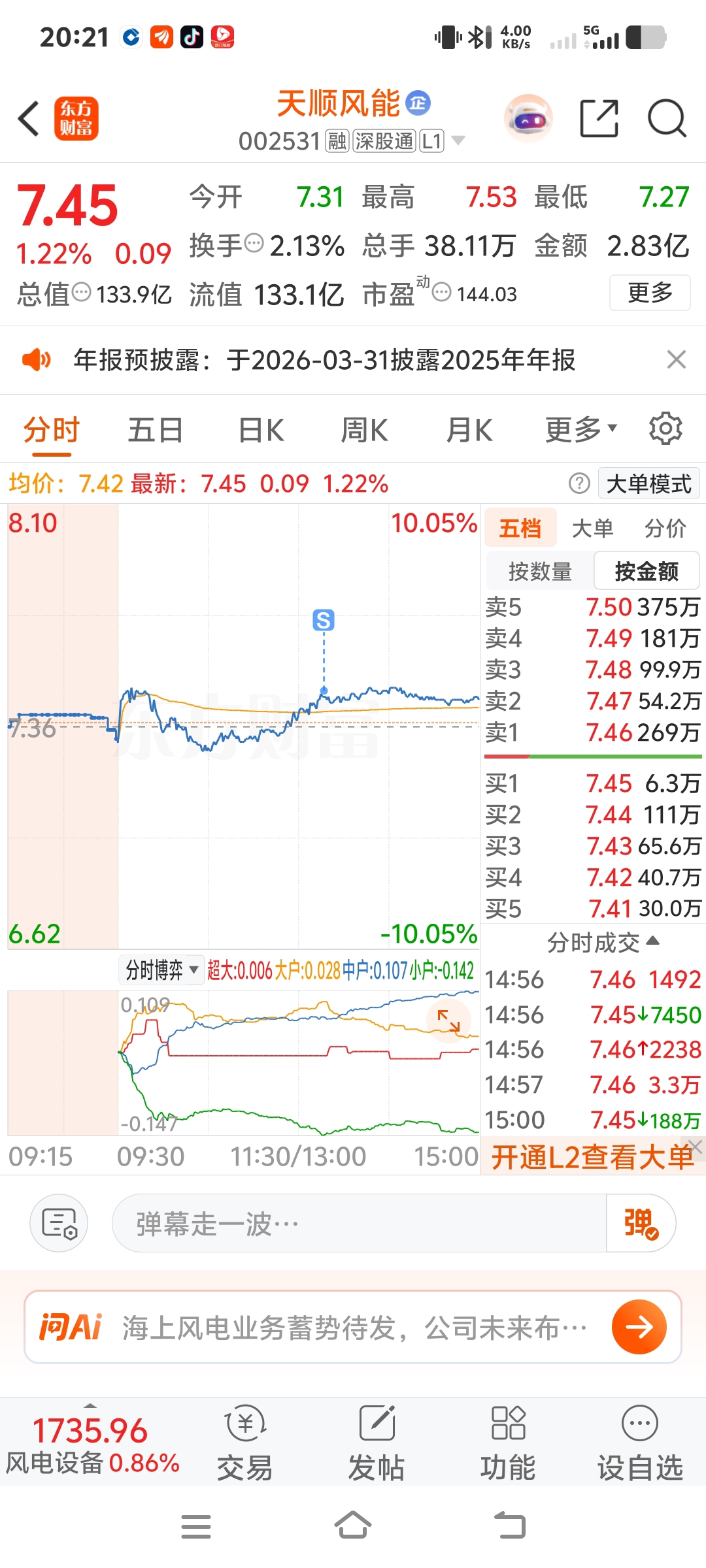 $天顺风能(SZ002531)$ 我今天出了明天跌下来在买点