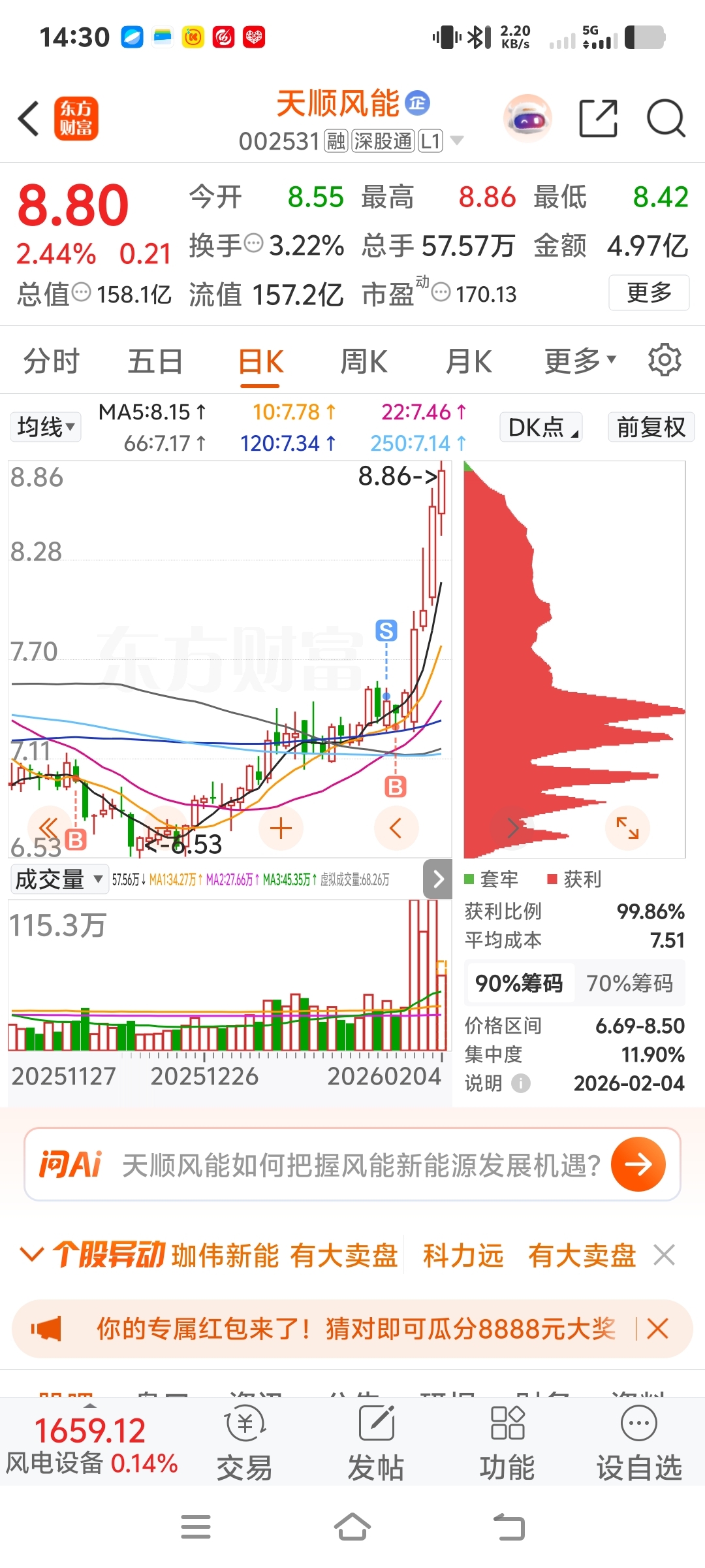 $天顺风能(SZ002531)$ 这波让我给抓住了