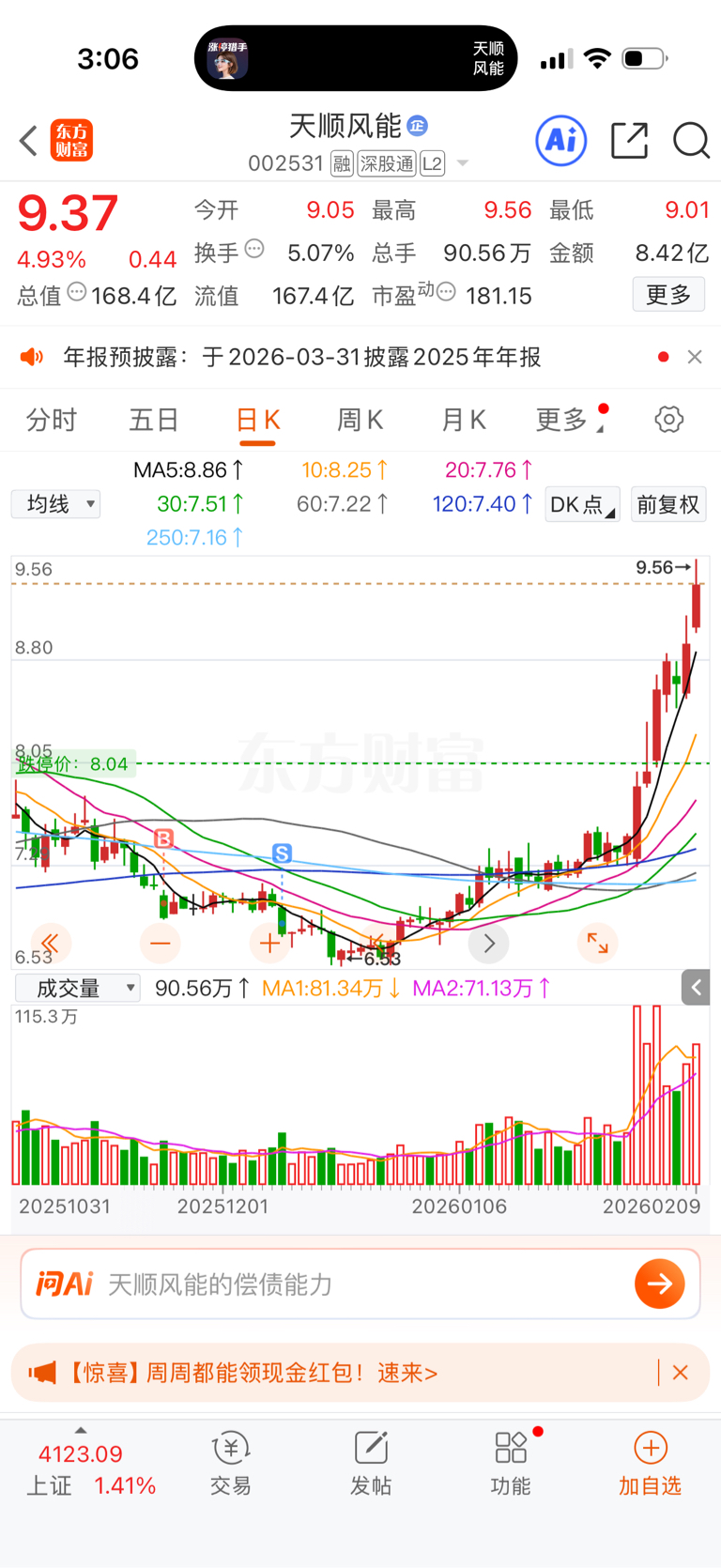 $天顺风能(SZ002531)$ hhhhh无语了,两根阴线就把我洗出去了
