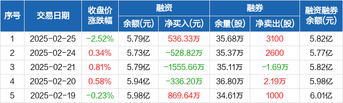 天山铝业:融资净买入536.33万元,融资余额5.79亿元(02-25)