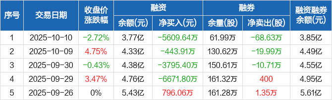 天山铝业:融资余额3.77亿元,创近一年新低(10-10)