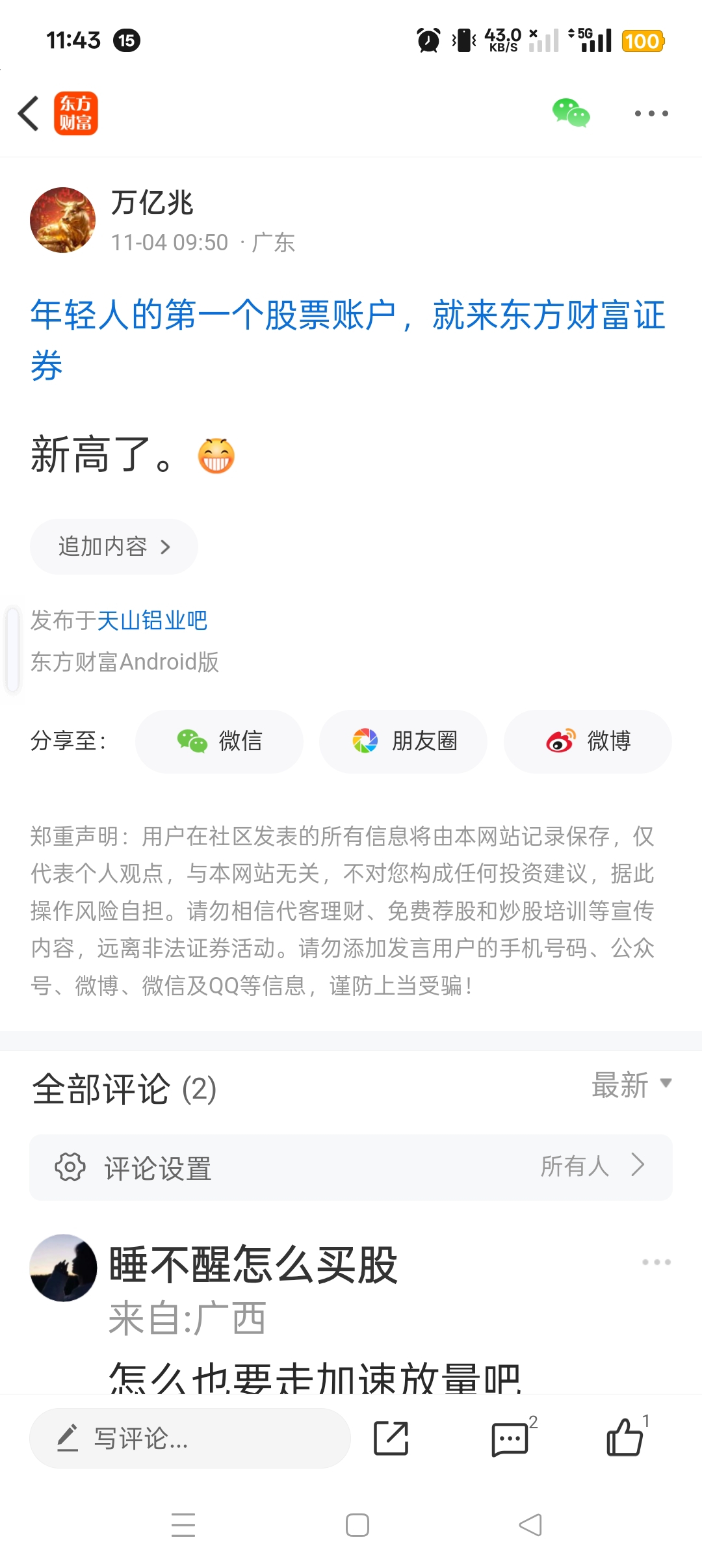 温馨提示: 1.根据《证券法》规定,禁止编造、传播虚假信息或者误导性信息,扰乱证券市场;2.用户在本社区发表的所有资料、言论等仅代表个人观点,与本网站立场无关,不对您构成任何投资建议。用户应基于自己的独立判断,自行决定证券投资并承担相应风险。《东方财富社区管理规定》