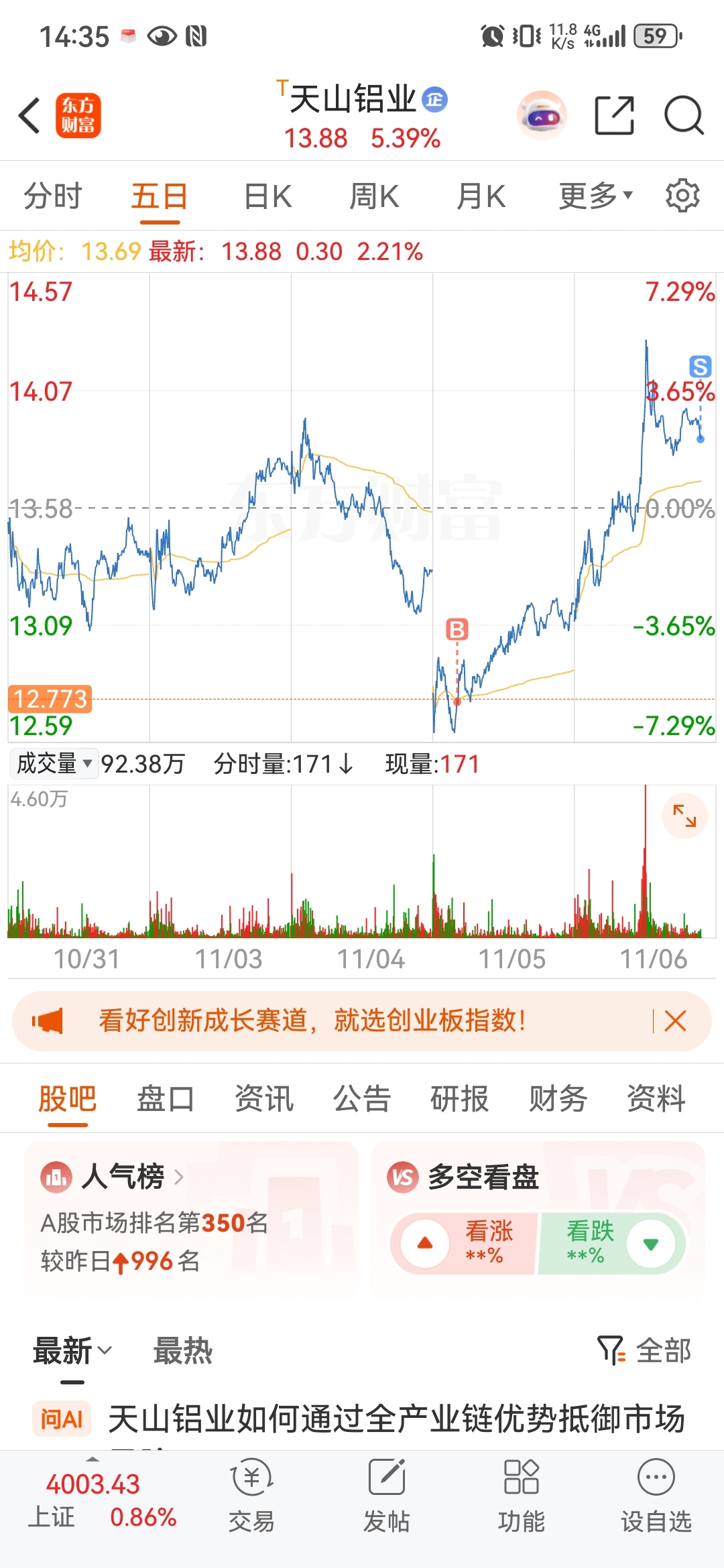 $天山铝业(SZ002532)$ 走了,主力可以拉了