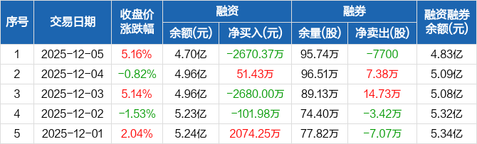 天山铝业:融资净偿还2670.37万元,融资余额4.7亿元(12-05)