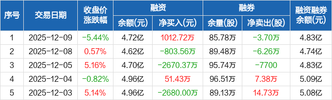 天山铝业:融资净买入1012.72万元,融资余额4.72亿元(12-09)