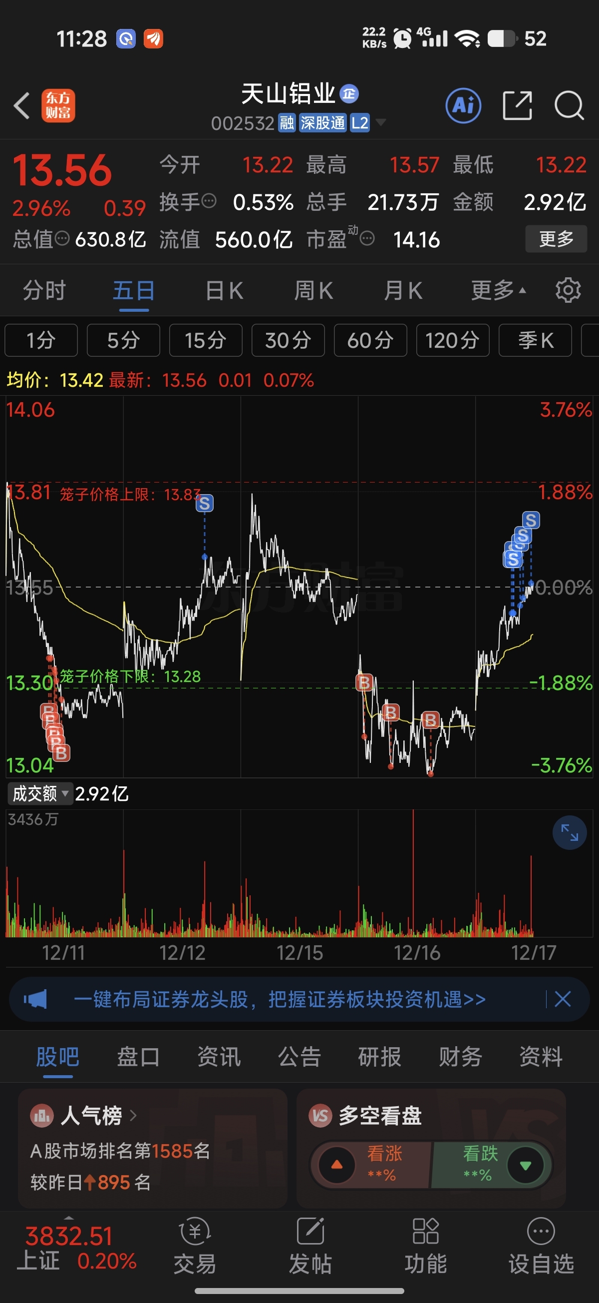 $天山铝业(SZ002532)$ 万八千的,我也看得上。下班了