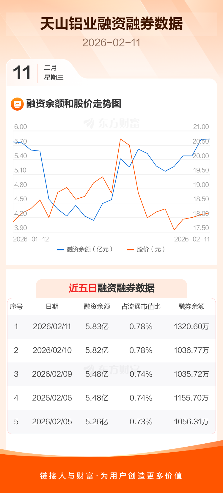 交易所最新数据显示,天山铝业于2026年2月11日获融资买入6976.56万元,融资偿还6845.88万元,当日融资净买入130.67万元。目前,该股融资余额5.83亿,占流通市值比例为0.78%。
