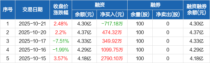 金杯电工:融资净偿还717.18万元,融资余额4.3亿元(10-21)