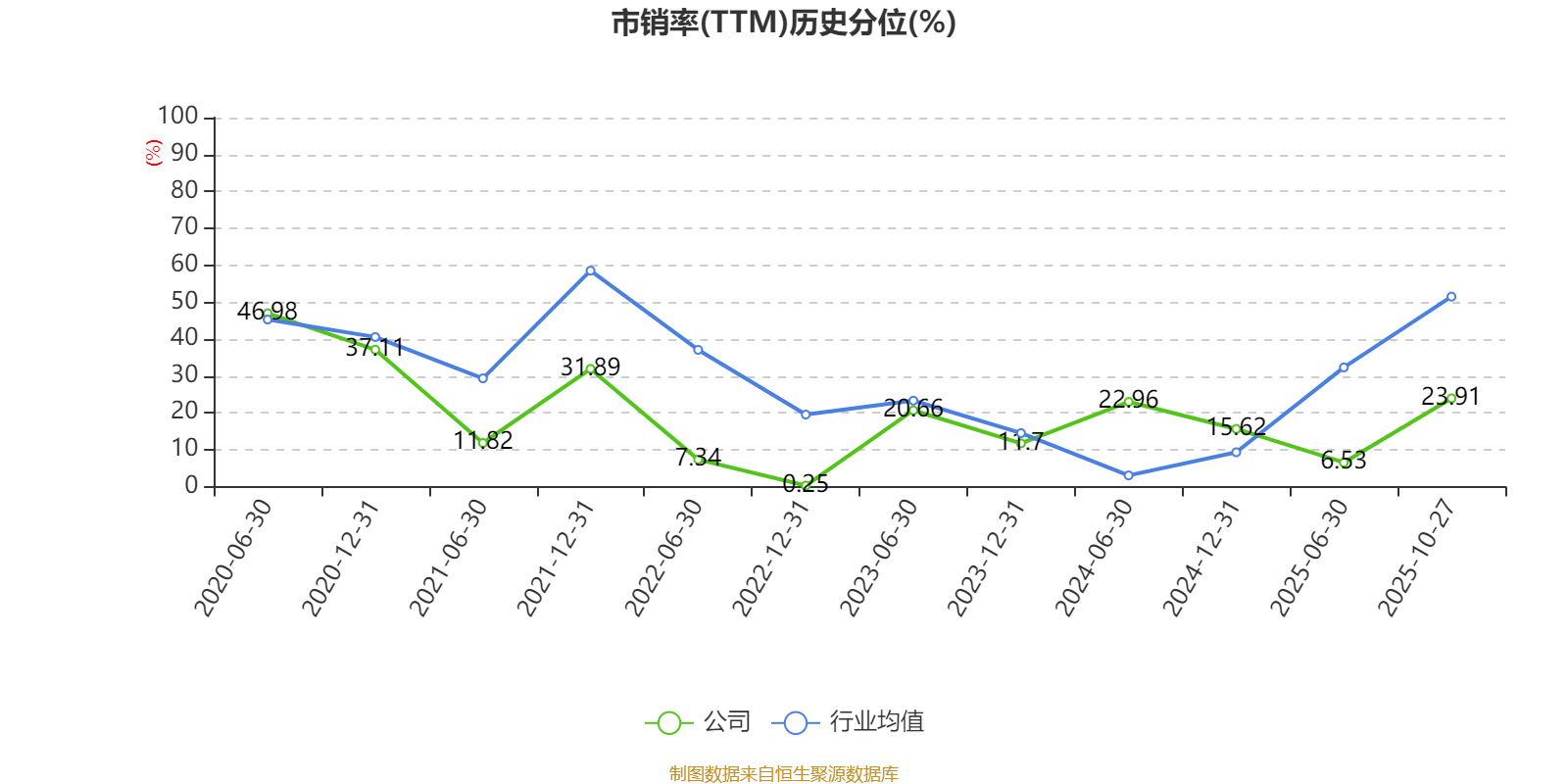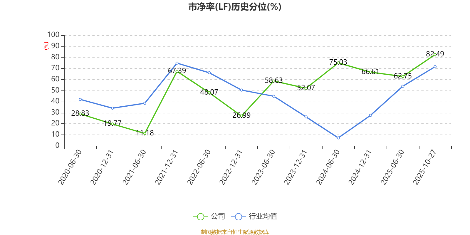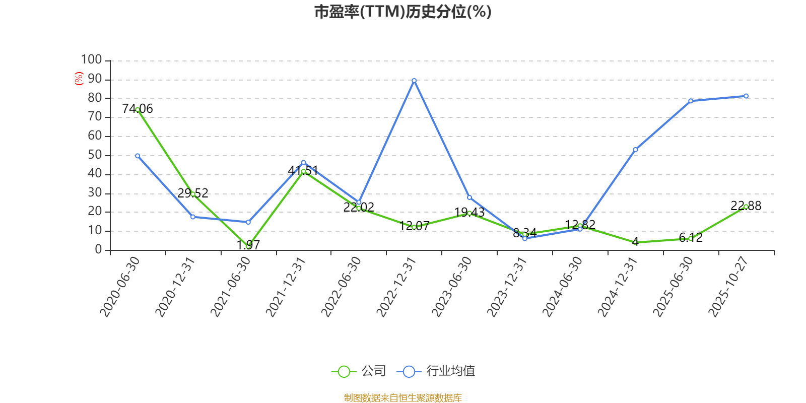 市盈率、市净率为负时,不显示当期分位数,会导致折线图中断。