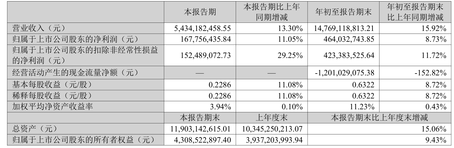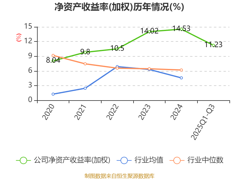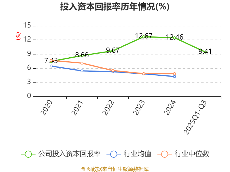 盈利能力方面, 2025年前三季度公司加权平均净资产收益率为11.23%,同比上升0.43个百分点。公司2025年前三季度投入资本回报率为9.41%,较上年同期下降0.02个百分点。