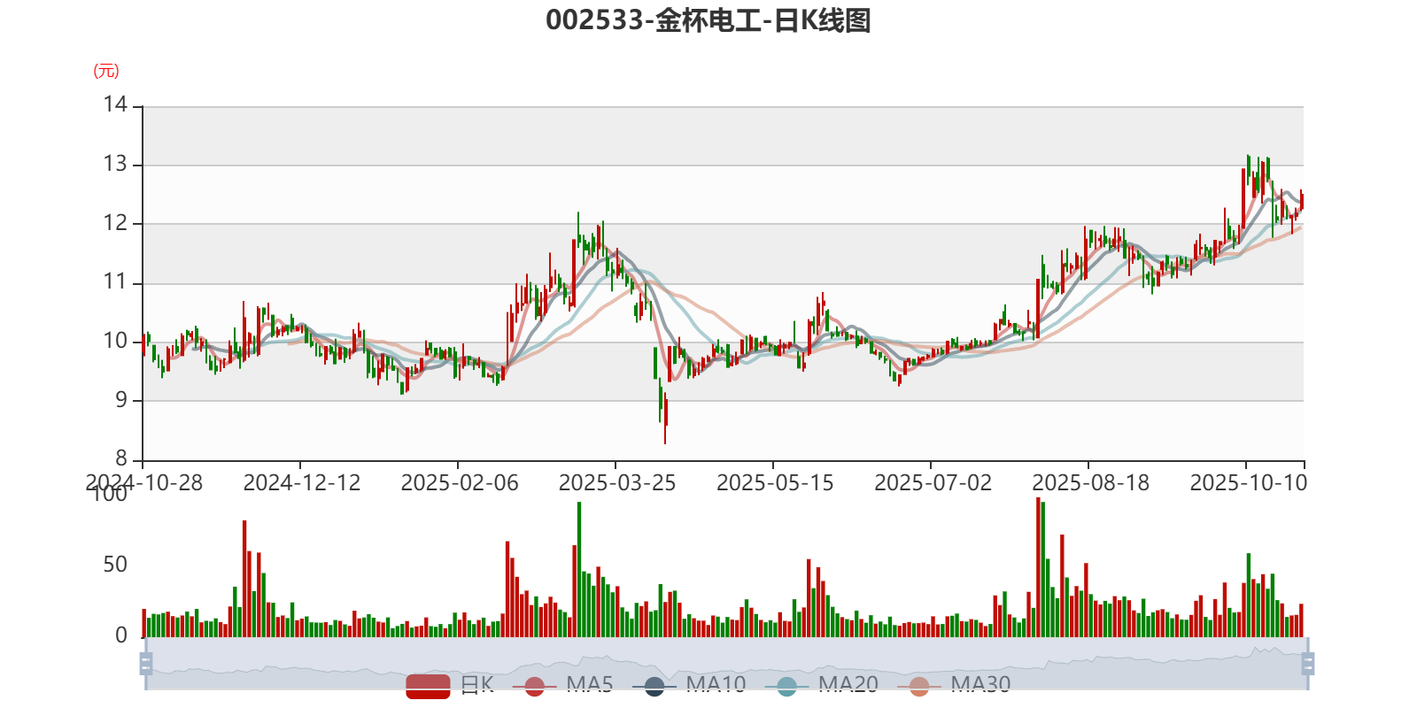 以10月27日收盘价计算,金杯电工目前市盈率(TTM)约为15.14倍,市净率(LF)约2.13倍,市销率(TTM)约0.47倍。