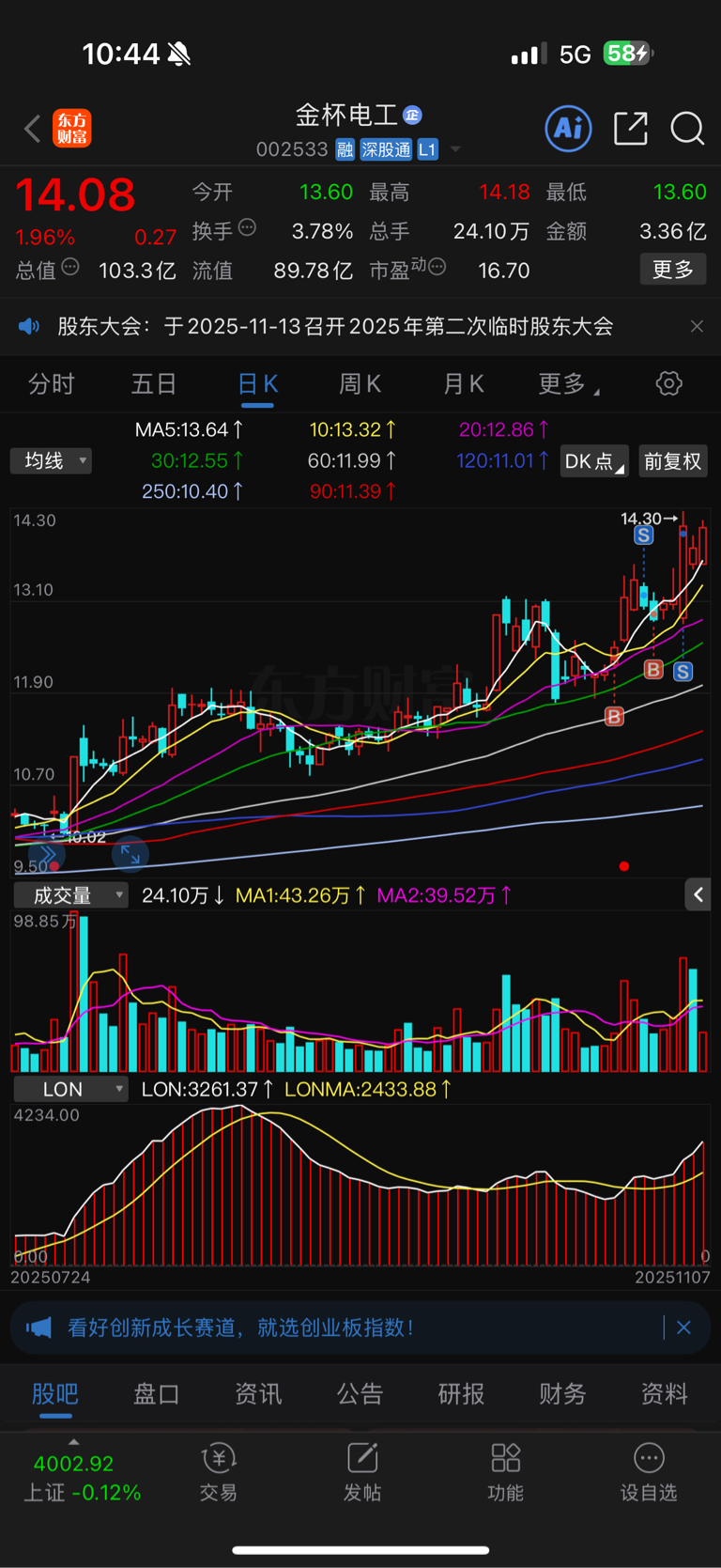 $金杯电工(SZ002533)$ 坚定持有到月底至少俩星期,前天只出了一千股